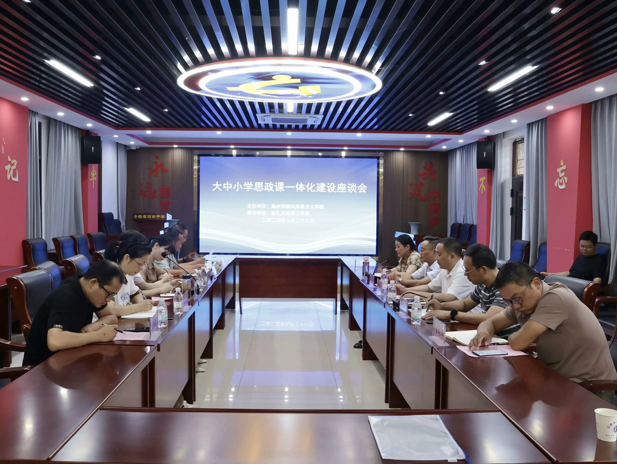 为贯彻落实习近平总书记关于学校思政课建设的重要指示精神,深入推进大中小学思政课一体化建设,9月26日池州市大中小学思政课一体化建设座谈会在石台中学召开,会议由太阳集团tyc539MACAU主办,石台中学承办。来自石台县教体局、各学段的思政课教师代表共二十余人参加了座谈会。
