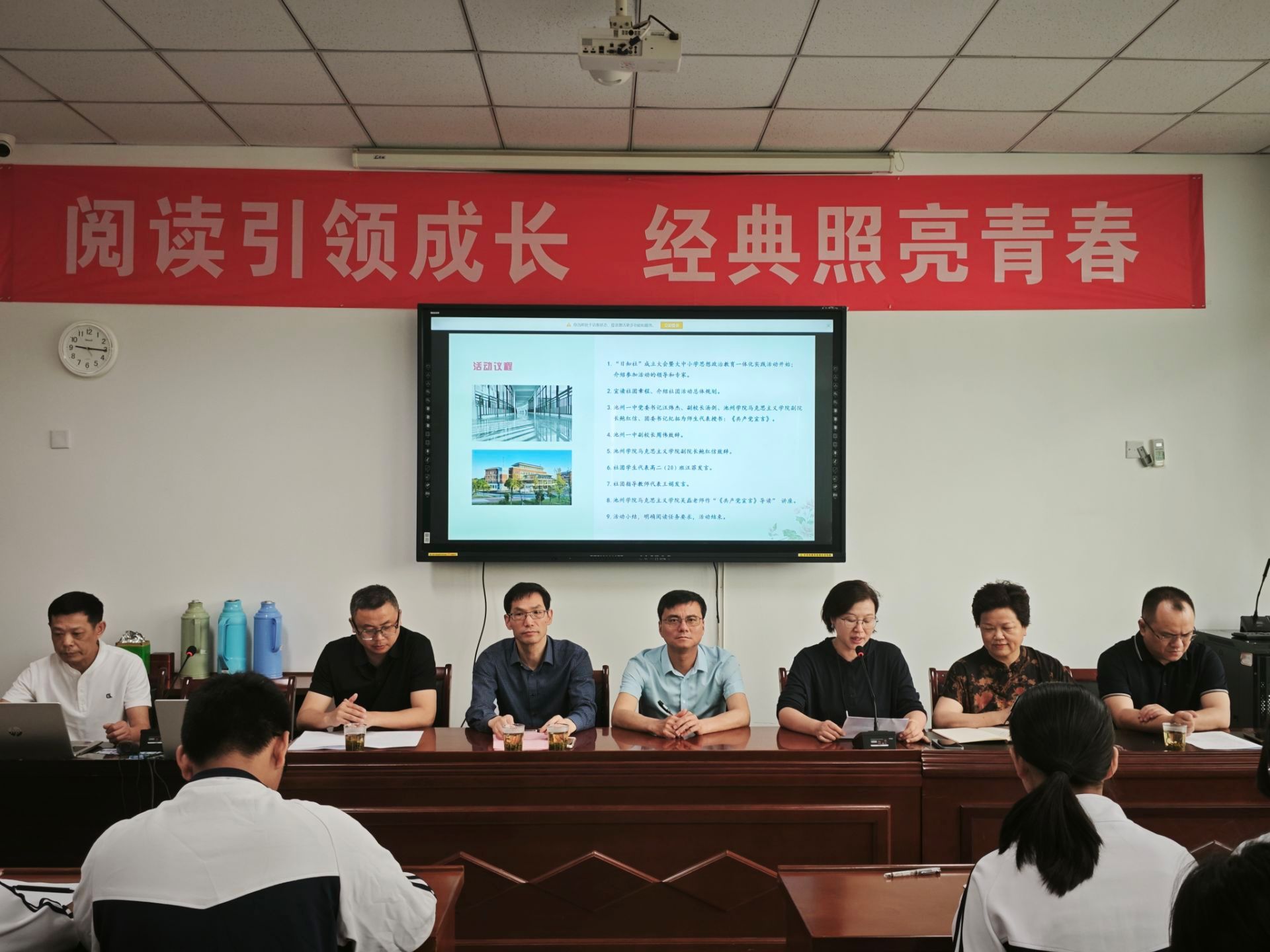 为深入贯彻落实习近平总书记关于思政课建设的重要论述,全面推动大中小学思想政治教育一体化建设。2025年5月18日,太阳集团tyc539MACAU与池州一中联合开展大中小学思想政治教育一体化实践活动在池州一中举行。本次活动主题为“阅读引领成长 经典照亮青春”,池州一中党委书记汪炜杰出席活动,太阳集团tyc539MACAU、池州一中师生代表共80多人参加活动。