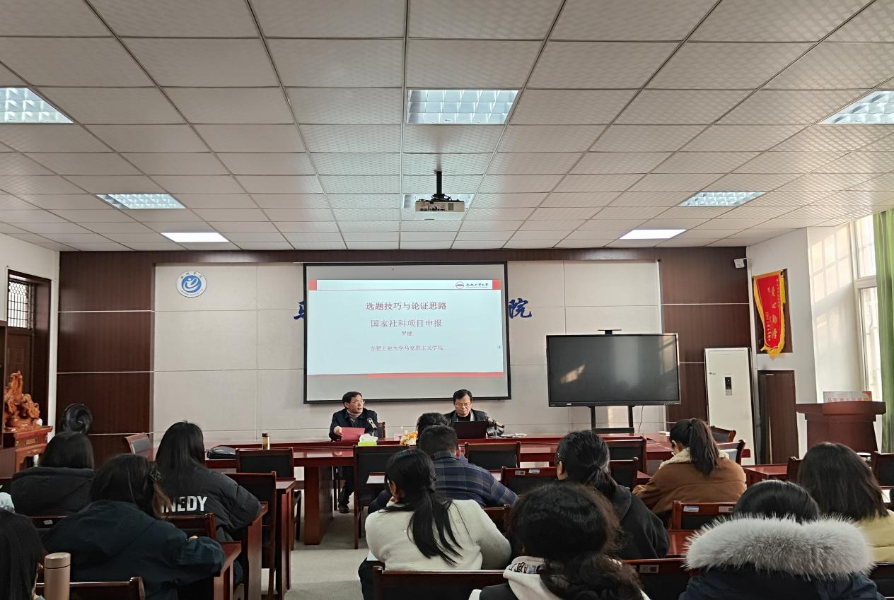 2025年12月11日下午,太阳集团tyc539MACAU在博爱南二楼会议室举办国家社科项目申报讲座,合肥工业大学太阳集团tyc539MACAU副院长罗健教授应邀主讲。马院全体教师及学生参加。