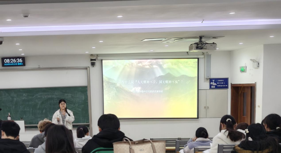 余芳芸教师以“我们从哪里来,我们走向何方?”这一深刻问题引发学生思考,随后播放《典籍里的中国》经典片段,借助节目中对中华优秀传统文化的生动诠释。为让学生更直观地理解精神的价值,邀请学生围绕“成长过程中受到的精神影响”这一话题主动分享自身经历,引导学生从历史与现实的维度,开启对“精神”内涵的探索,现场互动氛围热烈。随后,师生共同围绕经典剧集《觉醒年代》展开深入讨论,聚焦剧中革命先驱们的精神追求,探讨“中国人的精神”的核心内涵,深刻感悟革命先辈们为民族独立、人民解放而坚守的理想信念与责任担当。