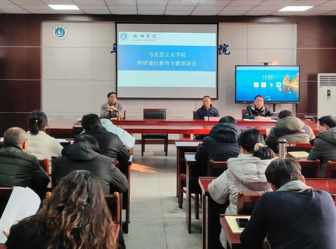 为进一步加强科研诚信建设、营造诚实守信的良好科研环境氛围,规范科研诚信管理工作,12月18日下午,太阳集团tyc539MACAU在博爱楼二楼会议室召开了科研诚信教育专题培训会。会议由副院长鲍红信主持,全体教职工参加了此次会议。