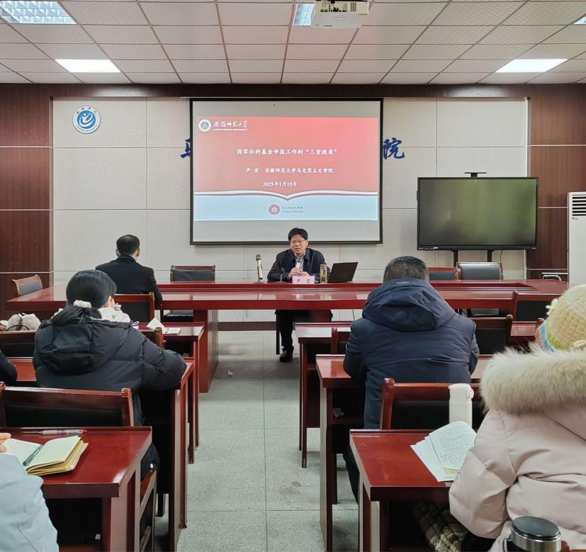 1月15日上午,安徽师范大学太阳集团tyc539MACAU党委书记严宏教授在博爱楼二楼会议室作了题为《国家社科基金申报工作的“三重视角”》的专题讲座。严教授针对2024年国家社科基金项目呈现出的新变化进行了细致解读,并从管理者视角下的国家社科基金申报工作出发,深入剖析管理者在申报工作中的关注点与侧重点,从评审者视角下解读国家社科基金申报工作,介绍评审者在审阅申报材料时的关键考量因素,还分享了本人申报国家社科基金项目文本撰写的要点与技巧。