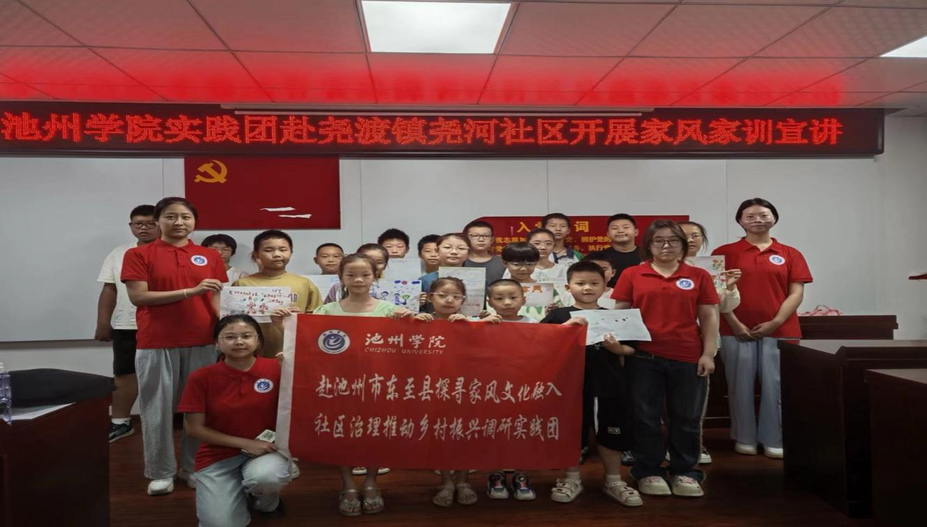 为深掘家风文化精神内涵,探究家风文化对社区治理的深厚影响,探寻家风文化融入社区治理推动乡村振兴的发展路径,太阳成集团tyc539赴池州市东至县实践调研团于2024年7月8日-10日在池州市东至县进行为期三天的实地调研,在讲解员的讲解和成员的访谈中切实探索并传承家风文化,将优秀家风文化更好地应用于社区治理之中。