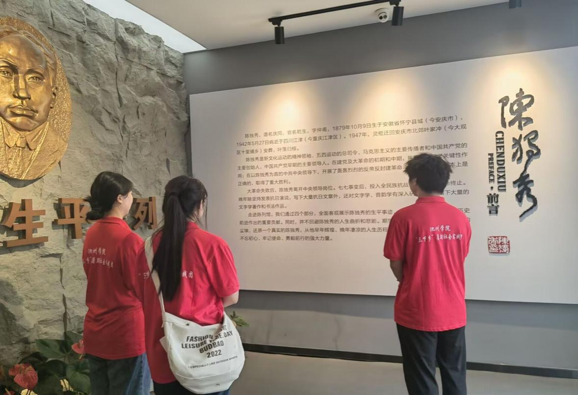 7月12日,实践团首先踏入陈独秀生平事迹陈列馆,并深刻感受到良好家风在个人成长和社会发展中的重要作用。在馆内,一幅幅珍贵的历史图片、一件件真实的文献实物,生动展现了陈独秀先生的生平事迹。陈独秀先生不仅在思想和革命事业上有着卓越贡献,其对家庭的重视和家风的培育也令人深思。通过参观,大家了解到陈独秀先生注重子女的教育和独立人格的培养,倡导勤奋、正直、爱国的价值观,他以身作则,用自己的言行影响着家人。