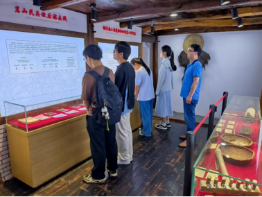 在茗山革命根据地旧址,丁桥镇“红色茗山”村史馆的浮雕墙与文化亭廊,生动展现了1939年至1949年间,以茗山为中心的皖南游击根据地如何成为“战时的后勤基地”:民兵配合新四军破坏日军通讯线、炸毁敌碉堡,妇女为游击队缝制军衣,儿童团传递情报。“茗山是前沿,又是后方”,这句话让团员们感受到革命年代军民团结的力量。思政教育专业学生刘文博指着展柜中孙运丰一家冒死保护游击队员的史料感慨道:“乡村振兴更需要传承这种‘鱼水情’。”