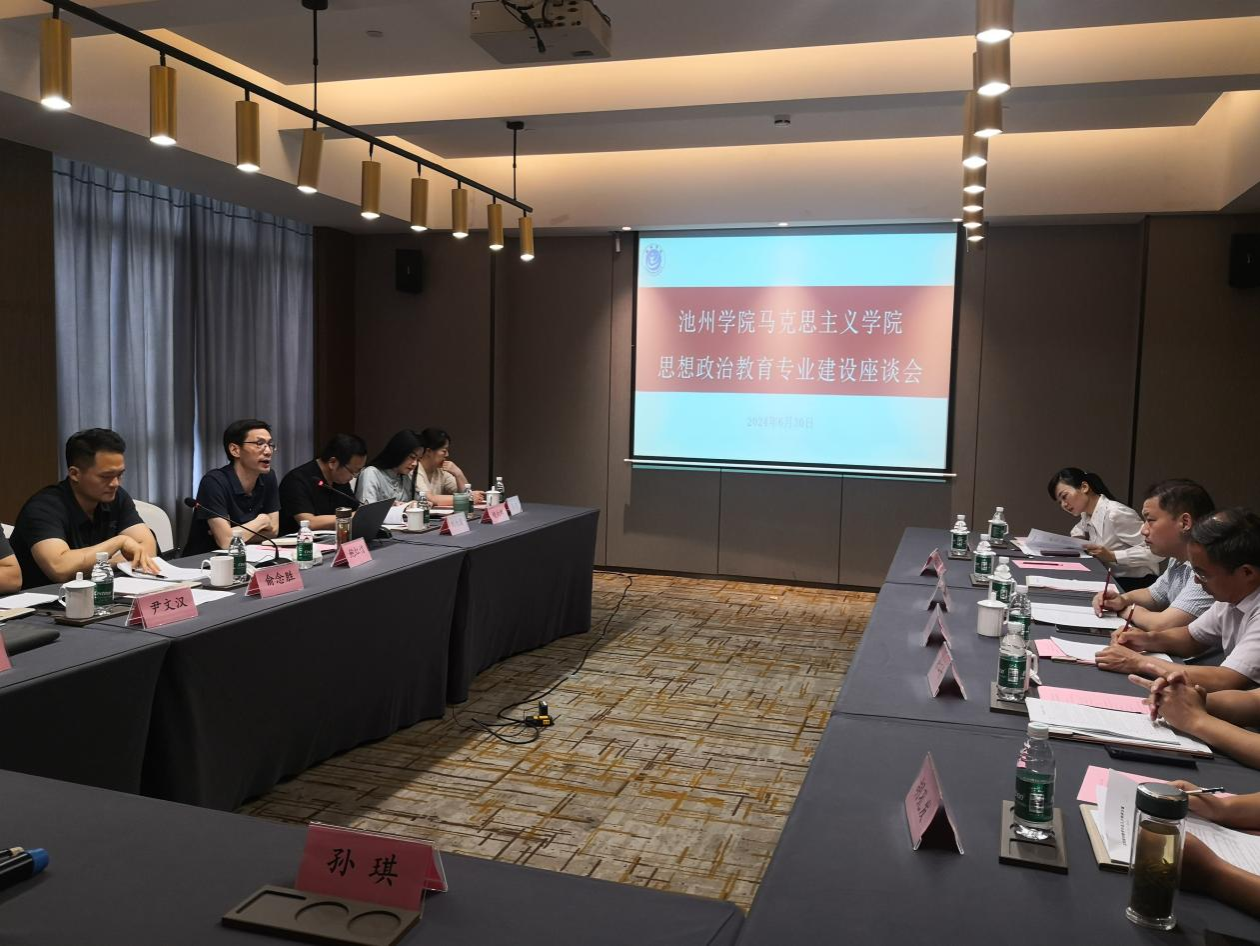 6月30日,太阳集团tyc539MACAU思想政治教育专业(师范类)建设座谈会召开。来自淮北师范大学、安庆师范大学等兄弟院校的领导、池州市中学教师代表和马院教研室主任等近20人参会。会议由太阳集团tyc539MACAU党委书记俞念胜主持。